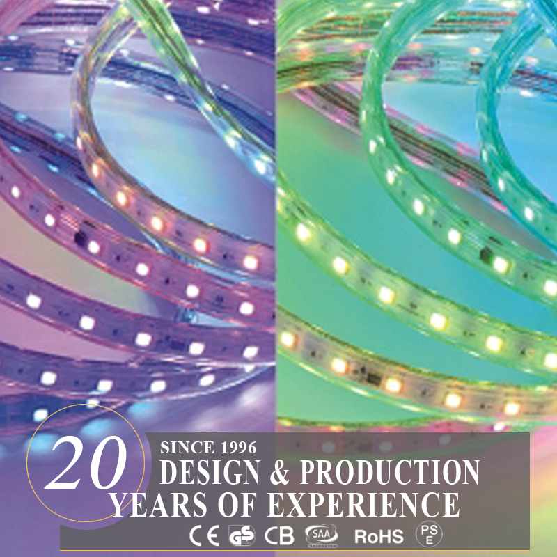 | SD-5050-60L-RGB-230V | 230V | 100m | 1.67cm | 60pcs | Multicolor | 1m | 9W/m | 100m |